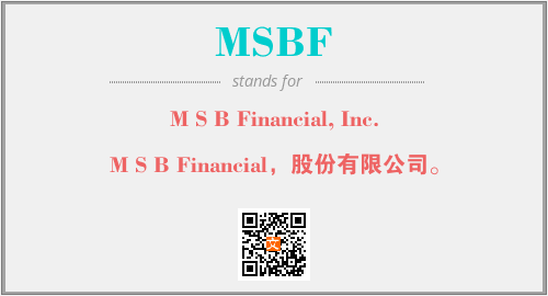 上述内容是“M S B Financial, Inc.”作为“MSBF”的缩写,解释为“M S B Financial,股份有限公司。”时的信息,以及英文缩略词MSBF所代表的英文单词,其对应的中文拼音、详细解释以及在英文中的流行度和相关分类、应用领域及应用示例等。