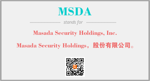 上述内容是“Masada Security Holdings, Inc.”作为“MSDA”的缩写,解释为“Masada Security Holdings,股份有限公司。”时的信息,以及英文缩略词MSDA所代表的英文单词,其对应的中文拼音、详细解释以及在英文中的流行度和相关分类、应用领域及应用示例等。