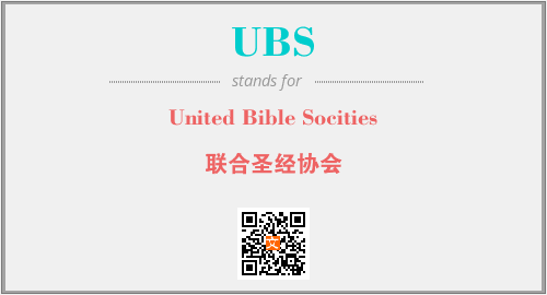 英文缩略词“UBS”经常作为“United Bible Socities”的英文缩写来使用,中文表示:“联合圣经协会”。本文将详细介绍英文缩写词UBS所代表英文单词,其对应的中文拼音、详细解释以及在英语中的流行度。此外,还有关于缩略词UBS的分类、应用领域及相关应用示例等。