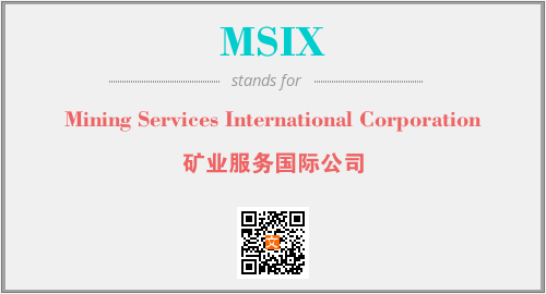 上述内容是“Mining Services International Corporation”作为“MSIX”的缩写,解释为“矿业服务国际公司”时的信息,以及英文缩略词MSIX所代表的英文单词,其对应的中文拼音、详细解释以及在英文中的流行度和相关分类、应用领域及应用示例等。