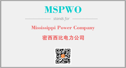 英文缩略词“MSPWO”经常作为“Mississippi Power Company”的英文缩写来使用,中文表示:“密西西比电力公司”。本文将详细介绍英文缩写词MSPWO所代表英文单词,其对应的中文拼音、详细解释以及在英语中的流行度。此外,还有关于缩略词MSPWO的分类、应用领域及相关应用示例等。