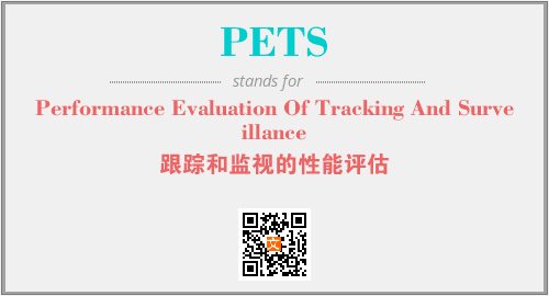 上述内容是“Performance Evaluation Of Tracking And Surveillance”作为“PETS”的缩写,解释为“跟踪和监视的性能评估”时的信息,以及英文缩略词PETS所代表的英文单词,其对应的中文拼音、详细解释以及在英文中的流行度和相关分类、应用领域及应用示例等。
