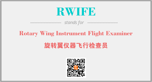 上述内容是“Rotary Wing Instrument Flight Examiner”作为“RWIFE”的缩写,解释为“旋转翼仪器飞行检查员”时的信息,以及英文缩略词RWIFE所代表的英文单词,其对应的中文拼音、详细解释以及在英文中的流行度和相关分类、应用领域及应用示例等。