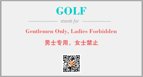 以上为Gentlemen Only, Ladies Forbidden英文缩略词GOLF的中文解释,以及该英文缩写在英语的流行度、分类和应用领域方面的信息。
