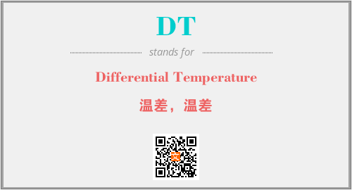 上述内容是“Differential Temperature”作为“DT”的缩写,解释为“温差,温差”时的信息,以及英文缩略词DT所代表的英文单词,其对应的中文拼音、详细解释以及在英文中的流行度和相关分类、应用领域及应用示例等。