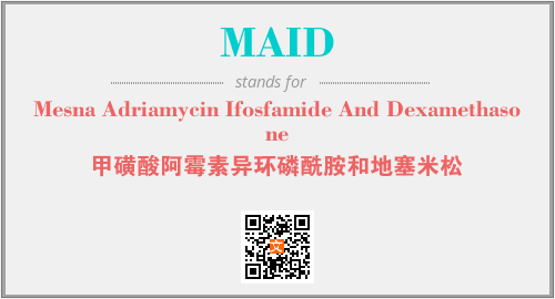 英文缩略词“MAID”经常作为“Mesna Adriamycin Ifosfamide And Dexamethasone”的英文缩写来使用,中文表示:“甲磺酸阿霉素异环磷酰胺和地塞米松”。本文将详细介绍英文缩写词MAID所代表英文单词,其对应的中文拼音、详细解释以及在英语中的流行度。此外,还有关于缩略词MAID的分类、应用领域及相关应用示例等。