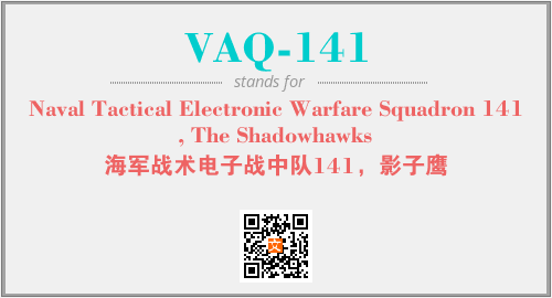 上述内容是“Naval Tactical Electronic Warfare Squadron 141, The Shadowhawks”作为“VAQ-141”的缩写,解释为“海军战术电子战中队141,影子鹰”时的信息,以及英文缩略词VAQ-141所代表的英文单词,其对应的中文拼音、详细解释以及在英文中的流行度和相关分类、应用领域及应用示例等。