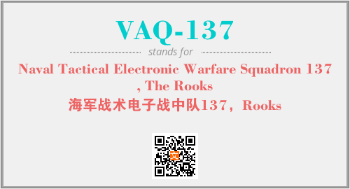 上述内容是“Naval Tactical Electronic Warfare Squadron 137, The Rooks”作为“VAQ-137”的缩写,解释为“海军战术电子战中队137,Rooks”时的信息,以及英文缩略词VAQ-137所代表的英文单词,其对应的中文拼音、详细解释以及在英文中的流行度和相关分类、应用领域及应用示例等。