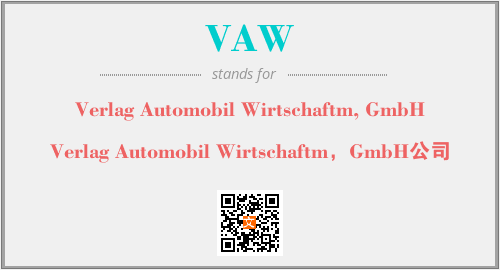 上述内容是“Verlag Automobil Wirtschaftm, GmbH”作为“VAW”的缩写,解释为“Verlag Automobil Wirtschaftm,GmbH公司”时的信息,以及英文缩略词VAW所代表的英文单词,其对应的中文拼音、详细解释以及在英文中的流行度和相关分类、应用领域及应用示例等。