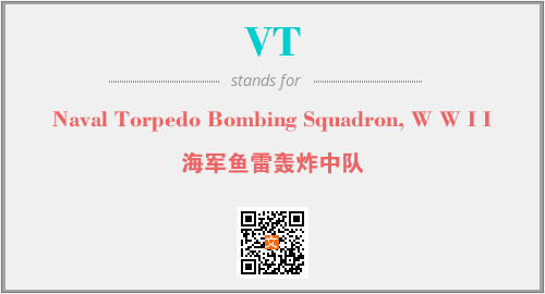 上述内容是“Naval Torpedo Bombing Squadron, W W I I”作为“VT”的缩写,解释为“海军鱼雷轰炸中队”时的信息,以及英文缩略词VT所代表的英文单词,其对应的中文拼音、详细解释以及在英文中的流行度和相关分类、应用领域及应用示例等。