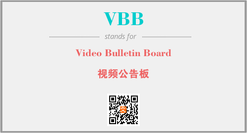 英文缩略词“VBB”经常作为“Video Bulletin Board”的英文缩写来使用,中文表示:“视频公告板”。本文将详细介绍英文缩写词VBB所代表英文单词,其对应的中文拼音、详细解释以及在英语中的流行度。此外,还有关于缩略词VBB的分类、应用领域及相关应用示例等。