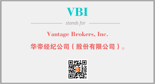 上述内容是“Vantage Brokers, Inc.”作为“VBI”的缩写,解释为“华帝经纪公司(股份有限公司)。”时的信息,以及英文缩略词VBI所代表的英文单词,其对应的中文拼音、详细解释以及在英文中的流行度和相关分类、应用领域及应用示例等。