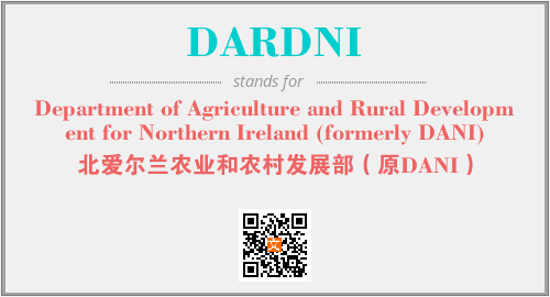 上述内容是“Department of Agriculture and Rural Development for Northern Ireland (formerly DANI)”作为“DARDNI”的缩写,解释为“北爱尔兰农业和农村发展部(原DANI)”时的信息,以及英文缩略词DARDNI所代表的英文单词,其对应的中文拼音、详细解释以及在英文中的流行度和相关分类、应用领域及应用示例等。