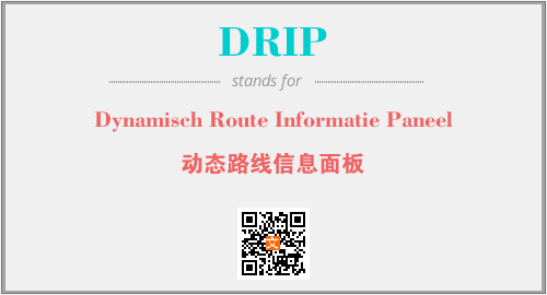 上述内容是“Dynamisch Route Informatie Paneel”作为“DRIP”的缩写,解释为“动态路线信息面板”时的信息,以及英文缩略词DRIP所代表的英文单词,其对应的中文拼音、详细解释以及在英文中的流行度和相关分类、应用领域及应用示例等。
