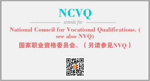 上述内容是“National Council for Vocational Qualifications. (see also NVQ)”作为“NCVQ”的缩写,解释为“国家职业资格委员会。(另请参见NVQ)”时的信息,以及英文缩略词NCVQ所代表的英文单词,其对应的中文拼音、详细解释以及在英文中的流行度和相关分类、应用领域及应用示例等。