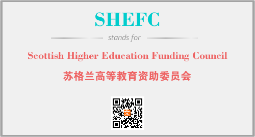 上述内容是“Scottish Higher Education Funding Council”作为“SHEFC”的缩写,解释为“苏格兰高等教育资助委员会”时的信息,以及英文缩略词SHEFC所代表的英文单词,其对应的中文拼音、详细解释以及在英文中的流行度和相关分类、应用领域及应用示例等。
