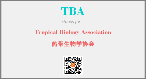 英文缩略词“TBA”经常作为“Tropical Biology Association”的英文缩写来使用,中文表示:“热带生物学协会”。本文将详细介绍英文缩写词TBA所代表英文单词,其对应的中文拼音、详细解释以及在英语中的流行度。此外,还有关于缩略词TBA的分类、应用领域及相关应用示例等。
