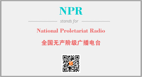 以上为National Proletariat Radio英文缩略词NPR的中文解释,以及该英文缩写在英语的流行度、分类和应用领域方面的信息。