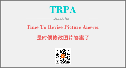 以上为Time To Revise Picture Answer英文缩略词TRPA的中文解释,以及该英文缩写在英语的流行度、分类和应用领域方面的信息。