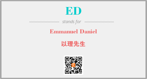 上述内容是“Emmanuel Daniel”作为“ED”的缩写,解释为“以理先生”时的信息,以及英文缩略词ED所代表的英文单词,其对应的中文拼音、详细解释以及在英文中的流行度和相关分类、应用领域及应用示例等。