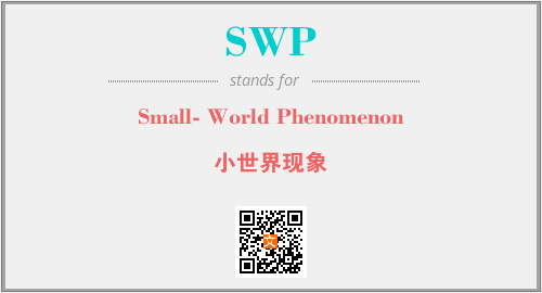 英文缩略词“SWP”经常作为“Small- World Phenomenon”的英文缩写来使用,中文表示:“小世界现象”。本文将详细介绍英文缩写词SWP所代表英文单词,其对应的中文拼音、详细解释以及在英语中的流行度。此外,还有关于缩略词SWP的分类、应用领域及相关应用示例等。