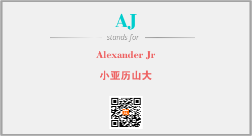 以上为Alexander Jr英文缩略词AJ的中文解释,以及该英文缩写在英语的流行度、分类和应用领域方面的信息。
