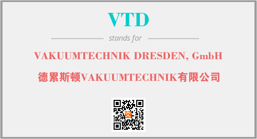 上述内容是“VAKUUMTECHNIK DRESDEN, GmbH”作为“VTD”的缩写,解释为“德累斯顿VAKUUMTECHNIK有限公司”时的信息,以及英文缩略词VTD所代表的英文单词,其对应的中文拼音、详细解释以及在英文中的流行度和相关分类、应用领域及应用示例等。