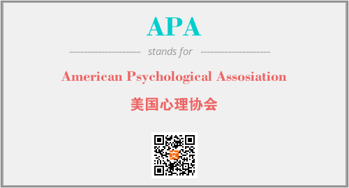 英文缩略词“APA”经常作为“American Psychological Assosiation”的英文缩写来使用,中文表示:“美国心理协会”。本文将详细介绍英文缩写词APA所代表英文单词,其对应的中文拼音、详细解释以及在英语中的流行度。此外,还有关于缩略词APA的分类、应用领域及相关应用示例等。