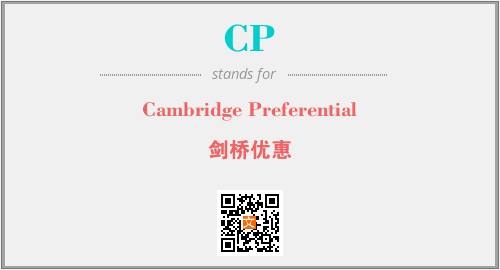 英文缩略词“CP”经常作为“Cambridge Preferential”的英文缩写来使用,中文表示:“剑桥优惠”。本文将详细介绍英文缩写词CP所代表英文单词,其对应的中文拼音、详细解释以及在英语中的流行度。此外,还有关于缩略词CP的分类、应用领域及相关应用示例等。