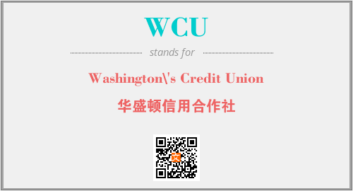以上为Washington\'s Credit Union英文缩略词WCU的中文解释,以及该英文缩写在英语的流行度、分类和应用领域方面的信息。