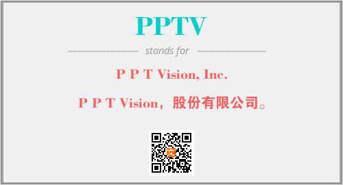 英文缩略词“PPTV”经常作为“P P T Vision, Inc.”的英文缩写来使用,中文表示:“P P T Vision,股份有限公司。”。本文将详细介绍英文缩写词PPTV所代表英文单词,其对应的中文拼音、详细解释以及在英语中的流行度。此外,还有关于缩略词PPTV的分类、应用领域及相关应用示例等。