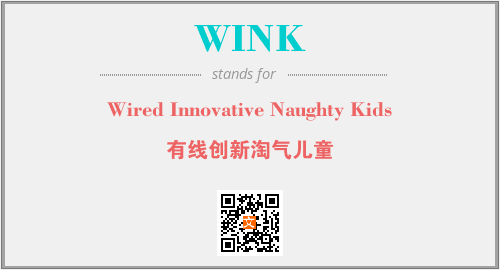 英文缩略词“WINK”经常作为“Wired Innovative Naughty Kids”的英文缩写来使用,中文表示:“有线创新淘气儿童”。本文将详细介绍英文缩写词WINK所代表英文单词,其对应的中文拼音、详细解释以及在英语中的流行度。此外,还有关于缩略词WINK的分类、应用领域及相关应用示例等。