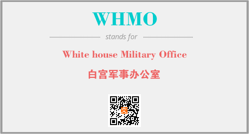 上述内容是“White house Military Office”作为“WHMO”的缩写,解释为“白宫军事办公室”时的信息,以及英文缩略词WHMO所代表的英文单词,其对应的中文拼音、详细解释以及在英文中的流行度和相关分类、应用领域及应用示例等。