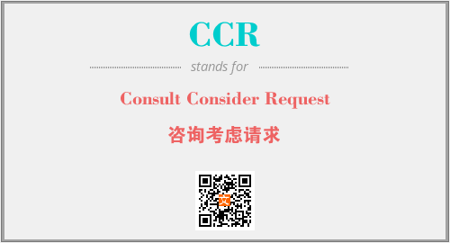 英文缩略词“CCR”经常作为“Consult Consider Request”的英文缩写来使用,中文表示:“咨询考虑请求”。本文将详细介绍英文缩写词CCR所代表英文单词,其对应的中文拼音、详细解释以及在英语中的流行度。此外,还有关于缩略词CCR的分类、应用领域及相关应用示例等。