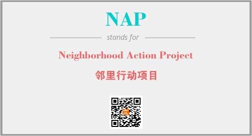 上述内容是“Neighborhood Action Project”作为“NAP”的缩写,解释为“邻里行动项目”时的信息,以及英文缩略词NAP所代表的英文单词,其对应的中文拼音、详细解释以及在英文中的流行度和相关分类、应用领域及应用示例等。