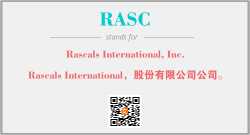 上述内容是“Rascals International, Inc.”作为“RASC”的缩写,解释为“Rascals International,股份有限公司公司。”时的信息,以及英文缩略词RASC所代表的英文单词,其对应的中文拼音、详细解释以及在英文中的流行度和相关分类、应用领域及应用示例等。