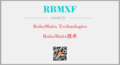 上述内容是“RoboMatix Technologies”作为“RBMXF”的缩写,解释为“RoboMatix技术”时的信息,以及英文缩略词RBMXF所代表的英文单词,其对应的中文拼音、详细解释以及在英文中的流行度和相关分类、应用领域及应用示例等。