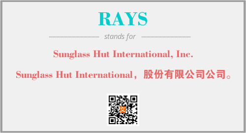 上述内容是“Sunglass Hut International, Inc.”作为“RAYS”的缩写,解释为“Sunglass Hut International,股份有限公司公司。”时的信息,以及英文缩略词RAYS所代表的英文单词,其对应的中文拼音、详细解释以及在英文中的流行度和相关分类、应用领域及应用示例等。