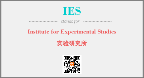 上述内容是“Institute for Experimental Studies”作为“IES”的缩写,解释为“实验研究所”时的信息,以及英文缩略词IES所代表的英文单词,其对应的中文拼音、详细解释以及在英文中的流行度和相关分类、应用领域及应用示例等。