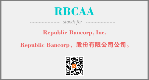 上述内容是“Republic Bancorp, Inc.”作为“RBCAA”的缩写,解释为“Republic Bancorp,股份有限公司公司。”时的信息,以及英文缩略词RBCAA所代表的英文单词,其对应的中文拼音、详细解释以及在英文中的流行度和相关分类、应用领域及应用示例等。