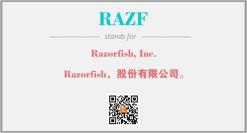 上述内容是“Razorfish, Inc.”作为“RAZF”的缩写,解释为“Razorfish,股份有限公司。”时的信息,以及英文缩略词RAZF所代表的英文单词,其对应的中文拼音、详细解释以及在英文中的流行度和相关分类、应用领域及应用示例等。