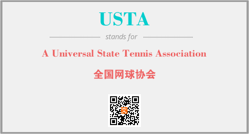 英文缩略词“USTA”经常作为“A Universal State Tennis Association”的英文缩写来使用,中文表示:“全国网球协会”。本文将详细介绍英文缩写词USTA所代表英文单词,其对应的中文拼音、详细解释以及在英语中的流行度。此外,还有关于缩略词USTA的分类、应用领域及相关应用示例等。