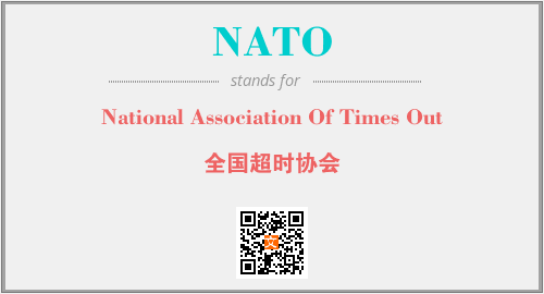 英文缩略词“NATO”经常作为“National Association Of Times Out”的英文缩写来使用,中文表示:“全国超时协会”。本文将详细介绍英文缩写词NATO所代表英文单词,其对应的中文拼音、详细解释以及在英语中的流行度。此外,还有关于缩略词NATO的分类、应用领域及相关应用示例等。