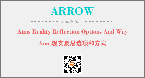 英文缩略词“ARROW”经常作为“Aims Reality Reflection Options And Way”的英文缩写来使用,中文表示:“Aims现实反思选项和方式”。本文将详细介绍英文缩写词ARROW所代表英文单词,其对应的中文拼音、详细解释以及在英语中的流行度。此外,还有关于缩略词ARROW的分类、应用领域及相关应用示例等。