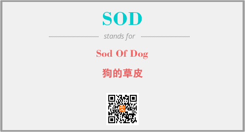 上述内容是“Sod Of Dog”作为“SOD”的缩写,解释为“狗的草皮”时的信息,以及英文缩略词SOD所代表的英文单词,其对应的中文拼音、详细解释以及在英文中的流行度和相关分类、应用领域及应用示例等。