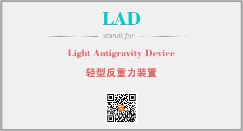 上述内容是“Light Antigravity Device”作为“LAD”的缩写,解释为“轻型反重力装置”时的信息,以及英文缩略词LAD所代表的英文单词,其对应的中文拼音、详细解释以及在英文中的流行度和相关分类、应用领域及应用示例等。