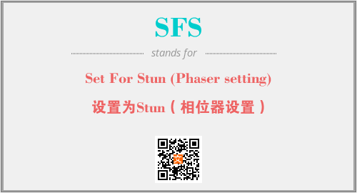 上述内容是“Set For Stun (Phaser setting)”作为“SFS”的缩写,解释为“设置为Stun(相位器设置)”时的信息,以及英文缩略词SFS所代表的英文单词,其对应的中文拼音、详细解释以及在英文中的流行度和相关分类、应用领域及应用示例等。