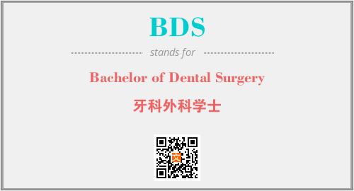 上述内容是“Bachelor of Dental Surgery”作为“BDS”的缩写,解释为“牙科外科学士”时的信息,以及英文缩略词BDS所代表的英文单词,其对应的中文拼音、详细解释以及在英文中的流行度和相关分类、应用领域及应用示例等。