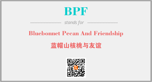 以上为Bluebonnet Pecan And Friendship英文缩略词BPF的中文解释,以及该英文缩写在英语的流行度、分类和应用领域方面的信息。