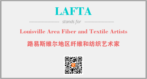 上述内容是“Louisville Area Fiber and Textile Artists”作为“LAFTA”的缩写,解释为“路易斯维尔地区纤维和纺织艺术家”时的信息,以及英文缩略词LAFTA所代表的英文单词,其对应的中文拼音、详细解释以及在英文中的流行度和相关分类、应用领域及应用示例等。